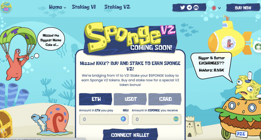 4. Sponge V2 – Emerging Altcoin With A P2E Game And A Stake-to-Bridge For High APYs