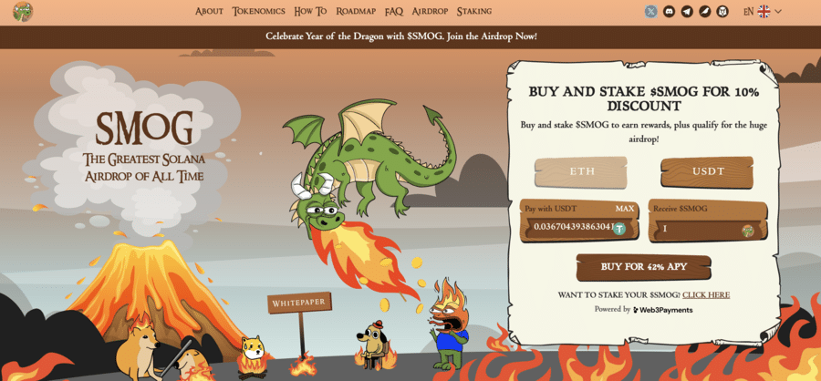3. Smog – New Meme Coin Offers 42% Staking APY and Massive Airdrop Rewards