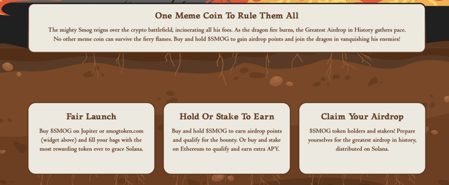Smog’s airdrop campaign is a key feature, rewarding holders for social media engagement and completing online challenges. It aims to offer the ‘Greatest SOL airdrop of all time.’