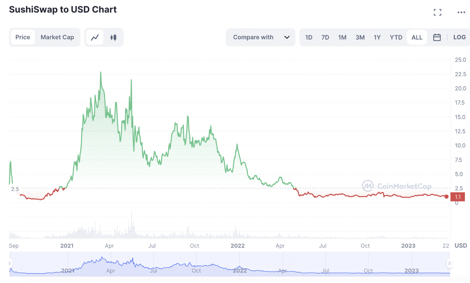 This is because the AMM uses liquidity pools. Investors can provide liquidity to a pool to earn interest. SushiSwap offers attractive APYs and investors can withdraw their tokens at any time. SushiSwap also supports decentralized loans. SushiSwap has its own native token, SUSHI. Previously trading with a market cap of nearly $3 billion, SUSHI is now worth just $300 million.