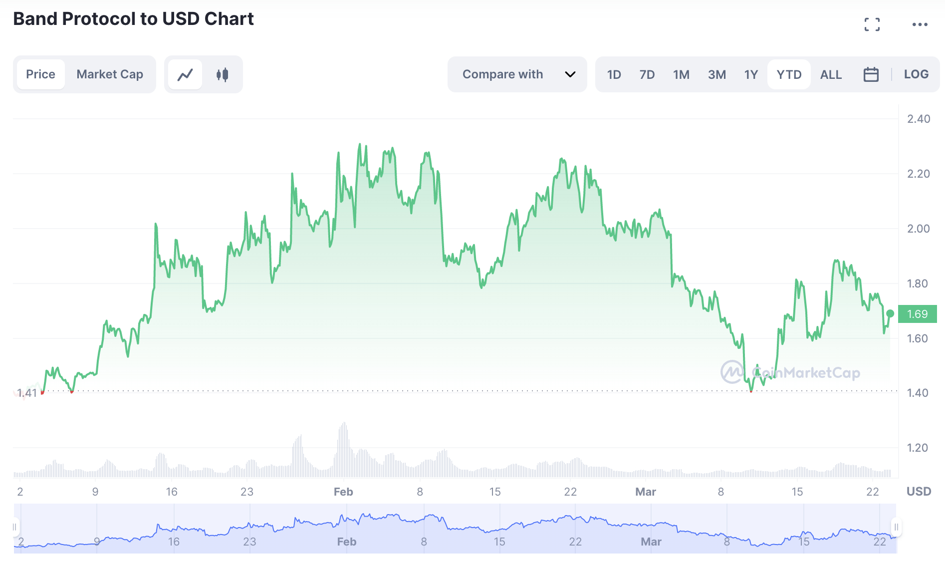 Another project that caught our eye when searching for the best micro-cap cryptocurrencies is Band Protocol (BAND). Launched in 2019, Band Protocol specializes in data oracles for smart contracts. This means that it provides real-world data to the blockchain. Not only that, but Band Protocol has cross-chain functionality.